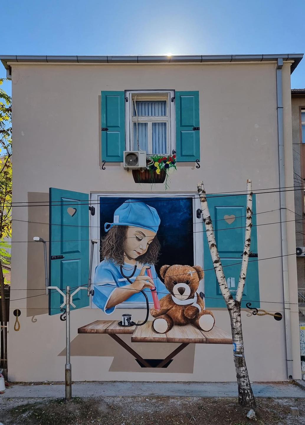 Ѕидот кај Здравствениот Дом со нов изглед, по неговото нивелирање и фасада, уметникот г.Наим Идризи претстави едно мало девојце во улога на медицинска сестра која вакцинира мечка (Teddy)